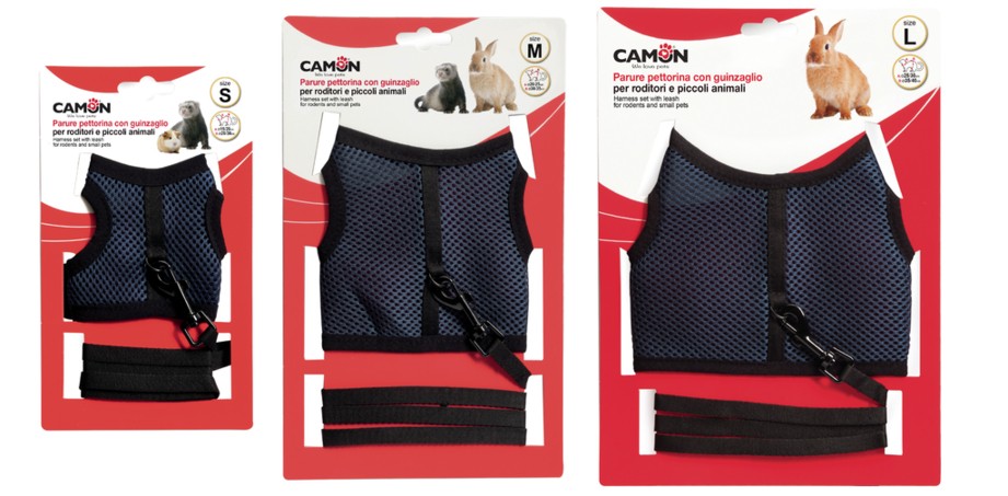 Parure per roditori e piccoli animali, composta da una morbida pettorina in leggero tessuto traspirante e da un comodo guinzaglio.