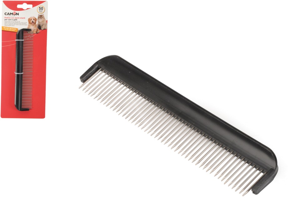 Pratico e funzionale pettine lineare in plastica per cani e gatti, dotato di 50 denti rotanti in metallo.