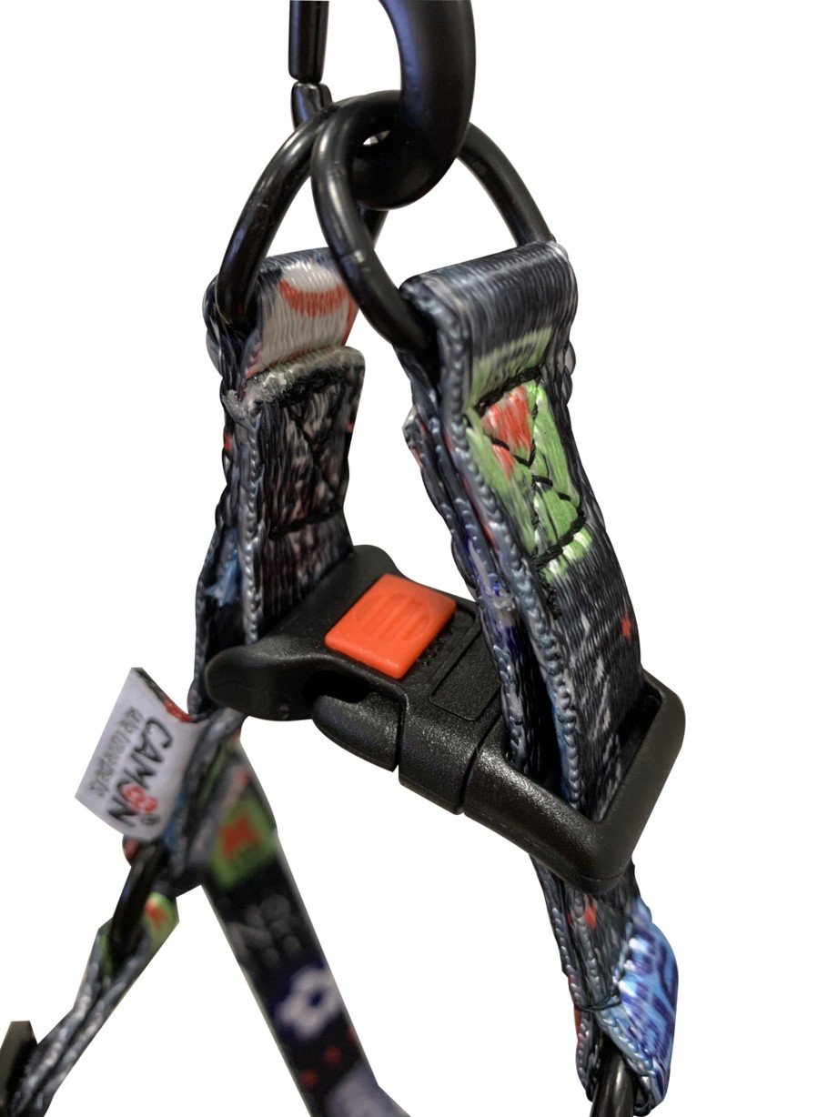 Comoda e colorata parure composta da pettorina più guinzaglio nella fantasia "Sport".