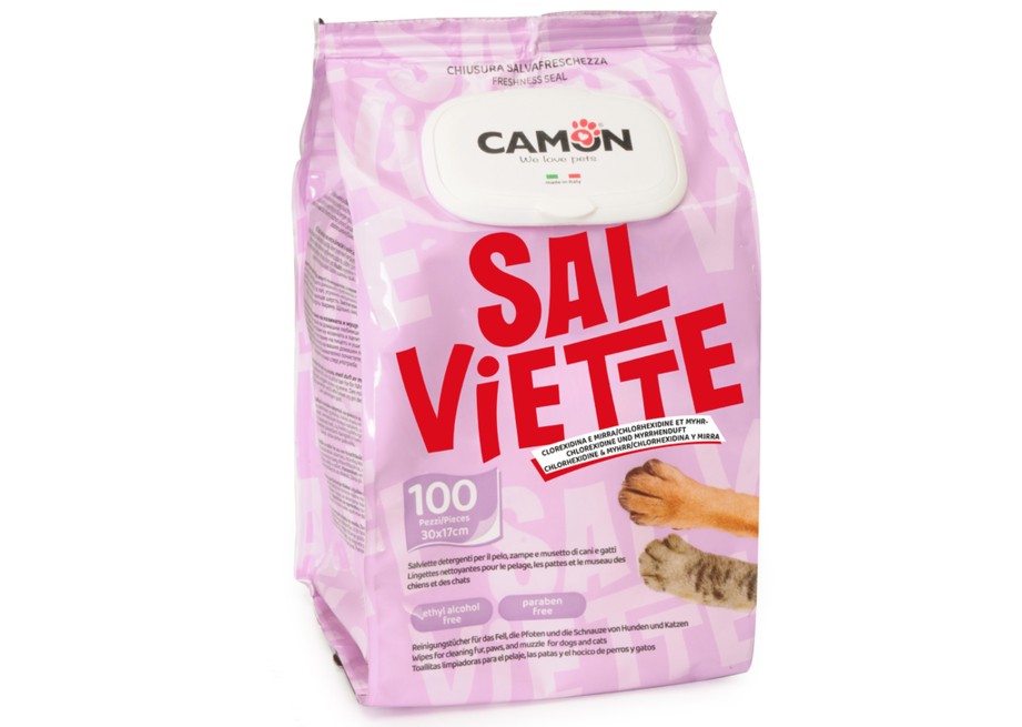 Praticissime per il vostro animale domestico, da tenere sempre a portata di mano: a casa e in viaggio, per pulire il pelo e le zampe, togliere il cattivo odore, pulire il muso e le orecchie.