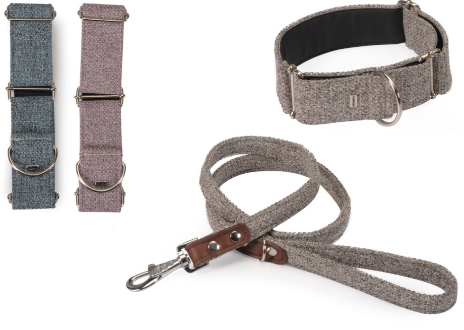Eleganti set composti da collare della tipologia semistrozzo e guinzaglio, specifici per levrieri.