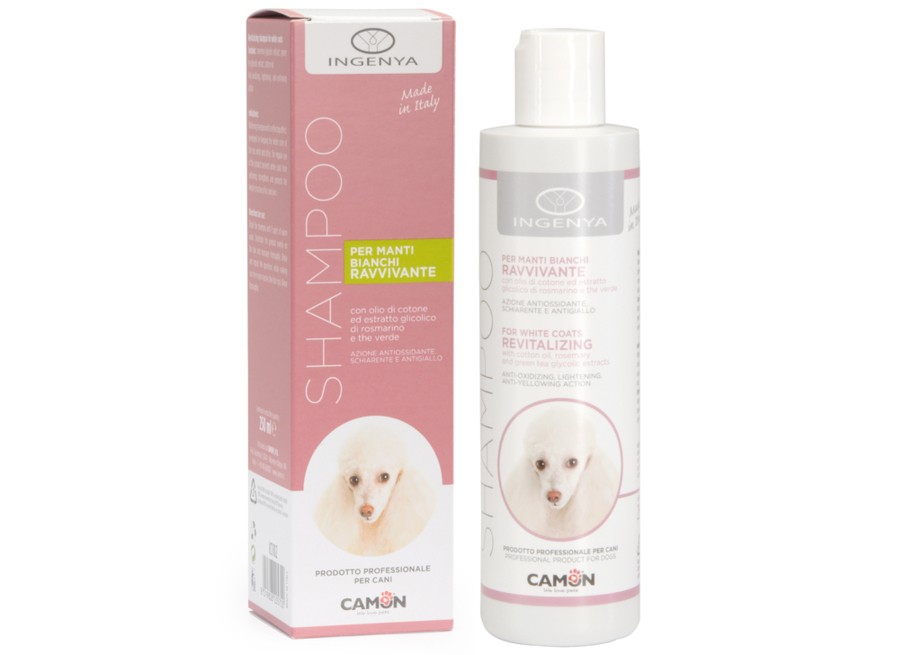 L’uso regolare del prodotto inibisce il colore giallo dai manti, rinforza e protegge la struttura cheratinica del pelo e della pelle.