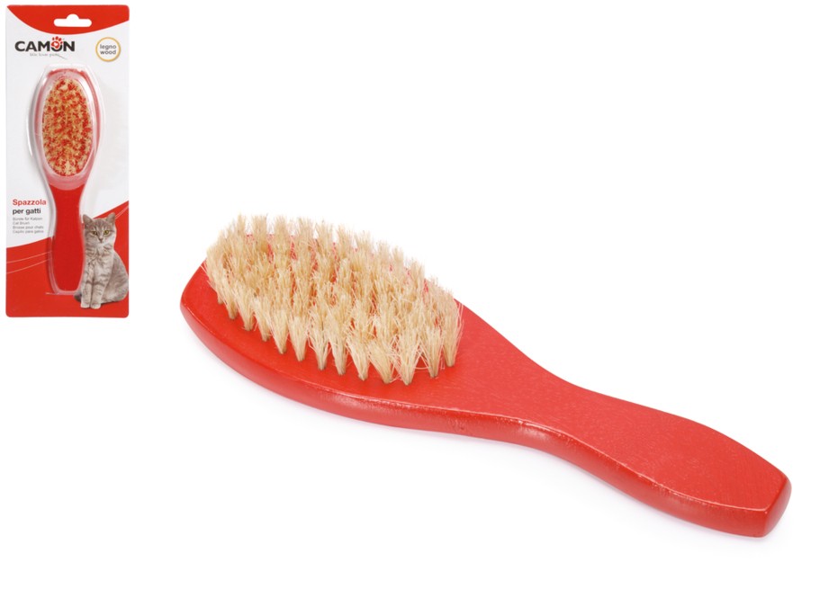 Comoda ed efficace spazzola per gatti con impugnatura in legno.